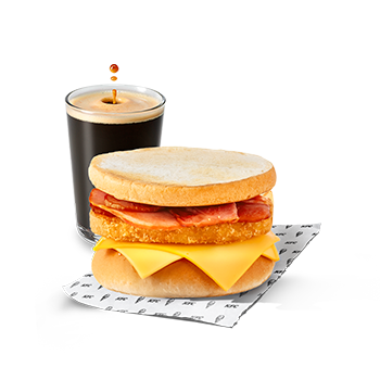 Kava + pusryčių sumuštinis su sūriu ir šonine